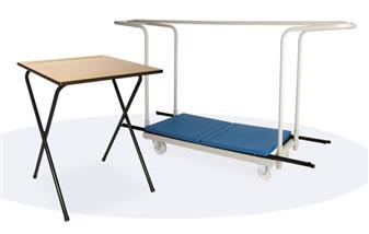 Economy Folding Exam Desk Shown With 40 Desk Trolley