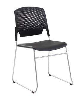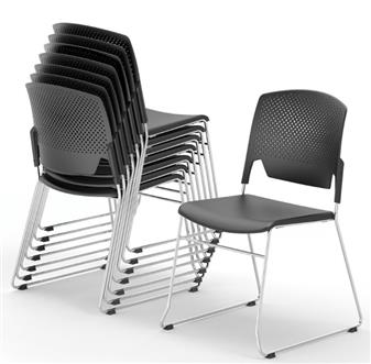 Edge Poly Chairs are mutli purpose chairs and are designed with a contoured seat & back for comfort and support. Available in 6 shell colours and chrome frame and in adult height. A versatile chair which is perfect for conference, lecture, meeting rooms and canteens. The chairs can be safely stacked up to 5 high freestanding. They can be stacked up to 30 high on a specially designed trolley. These chairs come with a 5 year guarantee.