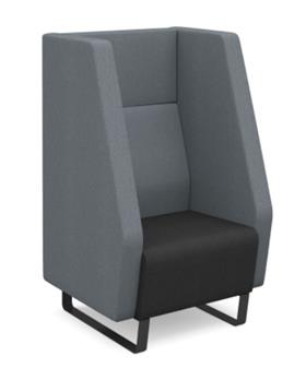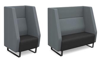 Encore High Back Soft Seating Range - single seater, 2 seater & 3 seater sofas with high back and fully upholstered in a choice of fabric colours, offering a modern and comfortable seating solution for open offices, receptions, waiting areas and breakout areas. Perfect solution to offer a private place for people to sit and relax or for teams to meet in seclusion. The feet are sled base and available in black steel or as solid wooden feet. Optional accessories include and a power module mounted under the seat, ideal for providing convenient but discreet power, data and USB fast charging. The units are upholstered in a range of Camira Era Fabrics and you can choose upholstery in one fabric or dual fabrics as per images displayed.