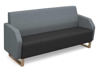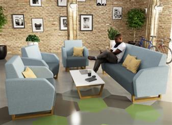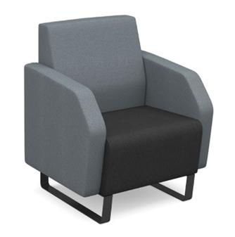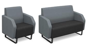 Encore Low Back Soft Seating Range - single seater, 2 seater & 3 seater sofas with low backs and are fully upholstered in a choice of fabric colours and offer a modern and comfortable seating solution designed to offer soft seating in open offices, receptions areas, waiting and breakout areas. Perfect in an open office and offering a private place for people to sit and relax or for teams to meet in seclusion.The feet are sled base and available in black steel or wooden. Optional accessories include and power module mounted under the seat ideal for providing convenient but discreet power, data and USB fast charging. The seating units are upholstered in a range of Camira Era Fabrics and you can choose upholstery in one fabric or dual fabrics as per images displayed.