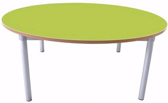 The tables are available in a choice of bright, durable, wipe-clean laminates with contrasting coloured edging, and with a choice of 2 heights and 3 size table tops with an aluminium frame. The tables come flat-packed and are assembled by connecting the table legs to the frame using a simple allen key fixing. The tables come with a 5 year guarantee and are British made.
