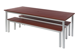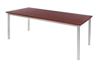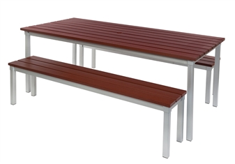 The Enviro Outdoor Tables require no maintainance and can stay outside year after year, with just a wipe of a cloth to keep them looking as good as new. The table top is a synthetic wood made from recycled materials. It feels and looks like wood but will not deteriorate like wood. The anodised aluminium frame gives the tables a smart appearance and provides strength and durability for all school environments and public areas such as beer gardens and hotel grounds. The Enviro Outdoor Tables, come in 5 sizes (2 rectangular and 3 square size) and match with Enviro Outdoor Benches in the same range to suit each size of table (see Related Items). The tables are delivered flat-packed and require simple allen key assembly. They come in 4 heights and are 100% recyclable.