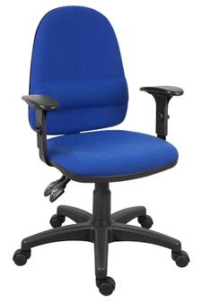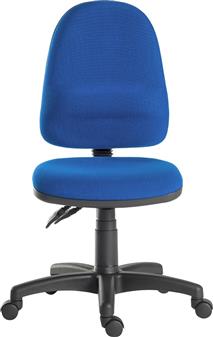Ergo Twin Lever High Back Operator Chair available in blue or black fabric. The chair features a gas seat-height adjustment and floating or fixed permanent contact backrest and a generous seat size. Optional fixed or adjustable armrests are available to purchase separately. Ideal seating for the office, or for other working areas. 1 year manufacturer guarantee.