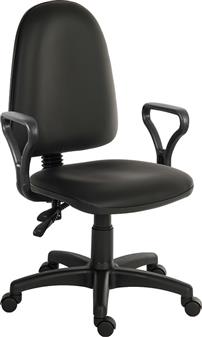 Ergo Twin Lever High Back Operator Chair - Black PU + Fixed Arms