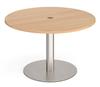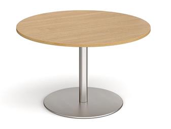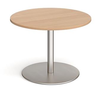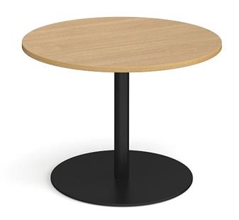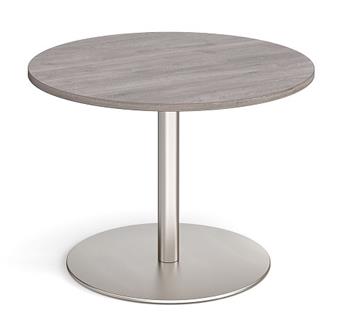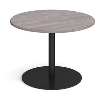 Eternal Circular Boardroom Tables - for meeting or breakout areas. The table is a robust meeting table with a stylish flat circular base available in brushed steel or black and in a choice of 4 top finishes - beech, oak, grey oak or white. Perfect for a wide variety of uses in a number of different environments. 2 year manufacturer guarantee