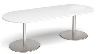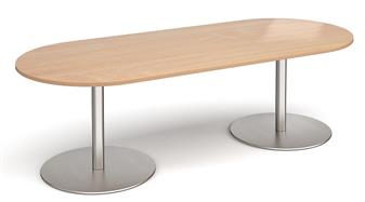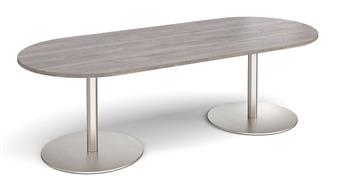 Eternal Oval Boardroom Table - for meeting or breakout areas, and suitable as a canteen table, is a robust meeting table with a stylish flat double circular base available in brushed steel or black and a choice of 4 top finishes - beech, oak, grey oak & white. Perfect for a wide variety of uses in a number of different environments. 2 year manufacturer guarantee.