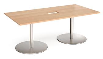 Rectangular Table - Beech Top & Brushed Steel Base - Power Ready
