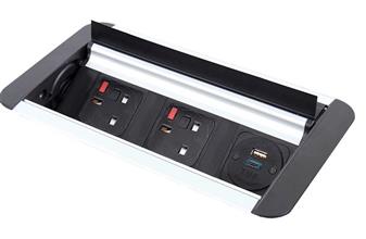 ECLIPSE-ENDD1 Integrated Power Module - 2 x UK Socket 1 x TUF (A&C connectors) USB Charger - Black With Silver