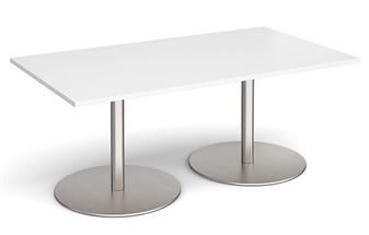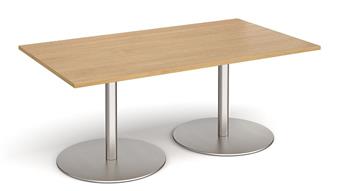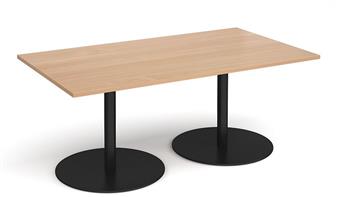 Eternal Rectangular Boardroom Tables - for meeting or breakout areas, and also suitable as a canteen table, is a robust meeting table with a stylish flat double circular base available in brushed steel or black, and a choice of 4 top finishes - beech, oak, grey oak & white. Perfect for a wide variety of uses in a number of different environments. 2 year manufacturer guarantee.