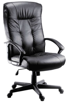 Executive High Back Leather Faced Chair with plush upholstery and higher than average backrest. Features a gas seat height adjustment and reclining function with adjustable tension control. Finished with durable nylon armrests and five star base. Ideal seating for the office, or for other working areas.