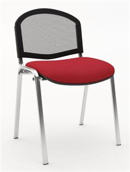F1C Mesh Back Stacking Chair With Chrome Frame, with seat available in a wide choice of fabric colours, and mesh back available in 7 mesh colours. The comfortable mesh back offers breatheability and support, with comfortable foam upholstered seat. This chair can be used in classrooms, reception areas, educational settings, waiting rooms, the meeting room, conference room, or as a visitor chair. Also ideal seating for a variety of areas in the school, office, village halls etc.. The chairs are recommended to stack 4-5 high.