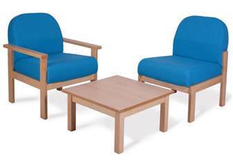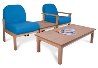 Felix Deluxe Woodframe Seating - Fabric with solid beech frames and deep foam seat and back available in a wide choice of fabric colours. The curved seat pad ensures maximum comfort in all areas for the user. Available with or without arms, or with a left-hand or right-hand arm, to allow chairs to be pushed together in rows, or made into a variety of configurations. This chair can be used in reception areas, the waiting room, staffroom, or in other work environments. Associated square or rectangular beech coffee tables also available.