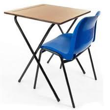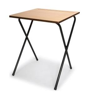 Most exam desks are made with wooden tops and collapsable legs, so the tables can be brought out during exam time and folded away and stored when not in use. These are different from standard school desks which are normally larger and will stack to a limited number high. Often, folding exam tables are supplied with trolleys to allow easy and safe movement and storage of large quantities of tables. Alternatives include stackable tables on skid bases or square tables with fully-welded frames or crushed-bent frames.