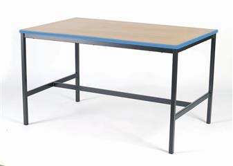 Fully-welded H-frame work table/bench designed for use throughout the school classroom where extra strength, stability, and height are needed. Suitable for the art room, science lab, craft/technology studio, home economics suite, design studio, research laboratory etc.. The fully welded H-frame table is made with standard 25mm square steel tube, and the frame itself can come in one of 4 colour choices. The table comes in a choice of 6 laminate top finishes, and with a durable PU Duraform edging, and is available in 5 different heights. THIS MANUFACTURER WILL NOT DELIVER TO DOMESTIC ADDRESSES & APPLIES A SURCHARGE FOR QUANTITIES UNDER 3 CONTACT THE OFFICE FOR DETAILS.