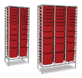 Mid Height Storage Combinations Double Column: 18 Trays - 12 Single, 2 Double, 2 Triple, 2 Quad.