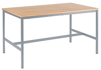 Fully-welded H-frame work table/bench designed for use throughout the school classroom where extra strength, stability, and height are needed. Suitable for the art room, science lab, craft/technology studio, home economics suite, design studio, research laboratory etc.. The fully welded H-frame table is made with standard 25mm square steel tube, and the frame itself can come in one of 4 colour choices. The table comes in a choice of 6 laminate top finishes, and with a rounded bullnose MDF edging, and is available in 5 different heights. THIS MANUFACTURER WILL NOT DELIVER TO DOMESTIC ADDRESSES & APPLIES A SURCHARGE FOR QUANTITIES UNDER 3.