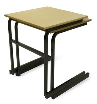 Heavy Duty Cantilever Exam Tables, with a crushed bent steel frame design which allows you to slide them on top of each other. The thick steel legs come witha 25mm x 25mm upper leg frame and 50mm x 25mm lower/feet frame, making this table very strong and durable to use. Stackable up to 5 high, these tables are ideal for computer rooms, ICT suites, and classrooms. The table comes in a choice of laminate top colours, and a choice of frame colours. Available with or without pen groove at the back of the table top. Minimum order 4 tables and comes with a 5 year manufacturer's guarantee.