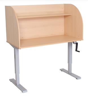 Height Adjustable Study Carrel With Crank Handle - with wooden top section