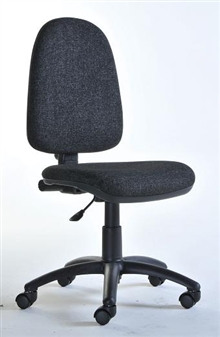High back operator chair, suitable for the school classroom, computer room, office, etc.. and available in a choice of charcoal or blue fabric. The chair comes with a 5-star swivel base and 50mm twin wheel castors, a gas-height adjustment and adjustable screw-knob back-tilt & back-height. It is available with no arms, with fixed arms or with height-adjustable arms. Ideal chairs for a range of office based applications. A budget chair available at short notice with 1 week delivery.