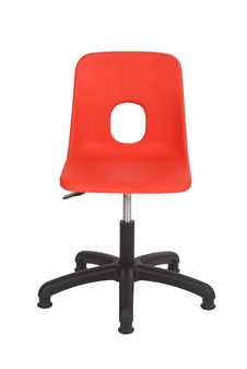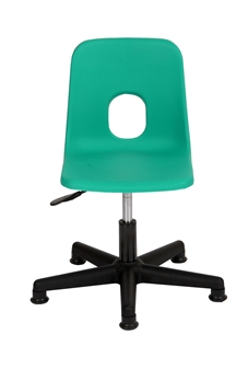 Hille E-Series Height-Adjustable Swivel Chair is designed for use in education but is also suited to the laboratory, workshop or office. It is an ideal school or classroom plastic chair, moulded from a high grade polypropylene shell, with a five star nylon base and with the option of glides or castors. Suitable as a student or teacher's chair, and in two sizes for primary or secondary school use, the chair comes with a gas-lift offering simple seat height adjustment. There are 12 chair colour options for shells. The chair is lightweight and comes with a handhole in the back. The chair comes with a 10 year guarantee. Weight Bearing To 21 Stone