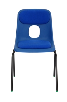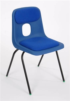 Hille E-Series Plastic Chair with fabric seat and back pad, used widely in schools, colleges, and other educational and multi-seating environments. This classic stacking chair is UK manufactured using high tensile steel frames and virgin polypropylene to ensure their durability in classroom environments. This chair can come with either a seat pad only, or a seat and back pad in a choice of 5 different colours. There are 13 chair colour options for shells, and 3 frame colour options. The chair is lightweight and comes with a handhole in the back. The E-Series chair is recommended for stacking up to 8 high. The chair comes with a 10 year manufacturer's guarantee. Weight Bearing To 21 Stone.