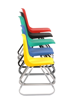Hille E-Series Skid Base Plastic Chair, used widely in schools, colleges, and other educational and multi-seating environments. This classic stacking chair is UK manufactured using high tensile steel frames and virgin polypropylene to ensure their durability in classroom environments. There are 13 chair colour options for shells, and 3 frame colour options. The chair is lightweight and comes with a handhole in the back. The E-Series Skid Base Chair is recommended for stacking up to 8 high. The chair comes with a 10 year guarantee. Weight Bearing To 21 Stone. Minimum order 6 chairs if you require less than the minimum please contact the office for details of the small order fee.
