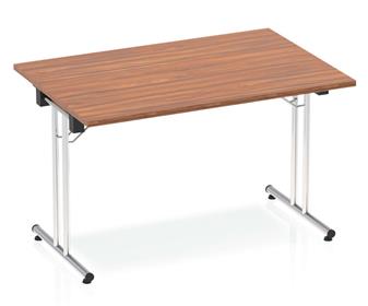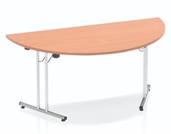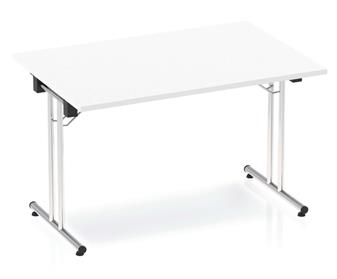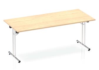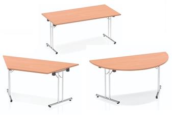 IMP Folding Tables with chrome folding legs and sturdy 25mm tops with smooth ABS edging. Available in 3 rectangular sizes and as a semicircular or trapezoidal table. Ideal in a school office, training room, or for use as a meeting room or conference table. Several tables can be pushed together to create a larger meeting room table. The table comes in a range of wood finishes and comes with a 5 year manufacturer's guarantee.