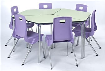 Jewel Tables are a brand new edition to this exciting range, and are an ideal table/desk for any school classroom, or other educational and learning environments. The modern 32mm frame and 18mm top make this a truly unique solution. The Jewel Table can work brilliantly as a set of three to create a 6-sided shaped table with seating for 6, and the tables can be separated to allow individual or small group work. The table is finished with Duraform PU Edge - a high impact and resilient textured spray PU edge, enhancing the look and lifetime of your tables. The table comes in one size, but in 6 different heights. There are 10 top colour options and 5 frame colour options. The table comes with a 5 year guarantee.