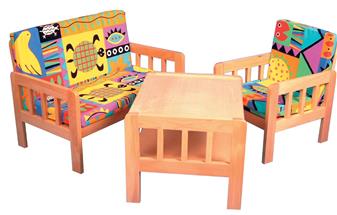 Jungle Seating is a jungle themed solid wooden frame seating offering a chair, two seater and three seater sofa and a table. Perfect for early years with a bright and colourful jungle themed fabric. Individual pieces can be purchased as well as a complete set. Perfect in any early years environment - nursery, playgroup, creche or library.
