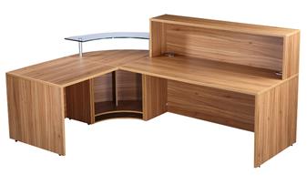 High quality reception L shaped counter in white, at a very competitive price, suitable for any school or office reception area, or any educational establishment wanting to make an impression in their reception area. The reception desk comprises a Main Counter (high), a Corner Section With Glass Shelf, and a Small Extension (low). Dimensions: Main Counter: W1600 x D800mm Corner Section: D800 x D800mm Small Extension: W800 x D800mm Overall Counter: 2.4m x 1.6m