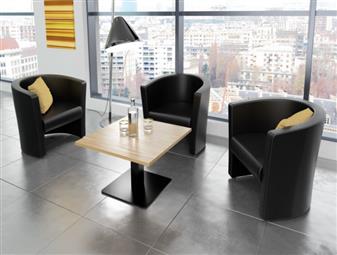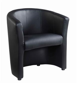 Leather Faced Tub Chair, black leather faced, with deep padded seat, contoured back, and glides. The tub chair comes with a 1-2 day delivery. A contemporary design of seating which is ideal in entrance halls, reception areas, or as visitor chairs.