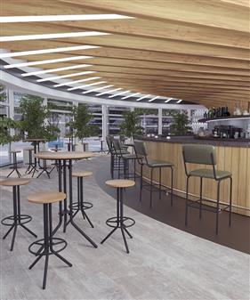 Ledge Wooden Bistro Set is available on a next day delivery, suitable for canteen areas, cafe or leisure settings, eating areas, breakout areas. The high table and stool features an elm wood finish and black tripod legs. An attractive cafe table set available at short notice with next day delivery.
