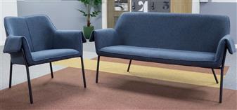 Liana Armchair & Two Seater Sofa - upholstered in either a mid blue or light grey velvet style fabric and available on a quick delivery. Comfortable and supportive with a sturdy black metal frame. Cushions with arm rests designed to fit the curve of the body. The seat and back are filled with thick padding for comfort. Designed for breakout, reception or waiting environments. Available on a quick delivery 1-2 weeks with a manufacturer guarantee 2 years.