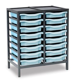 Low Charcoal Metal Frame Static 16 Tray Storage Unit (2 column)