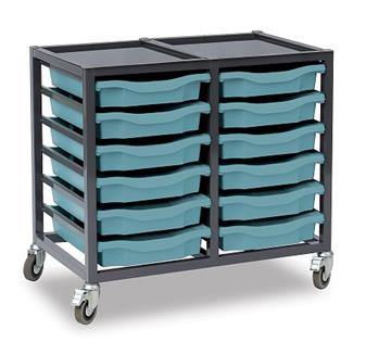 Low Charcoal Double Column Mobile Unit - 12 Metal Blue Trays