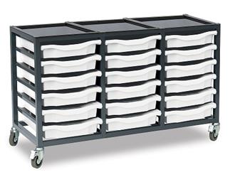 Low Charcoal Triple Column Mobile Unit - 18 White Trays