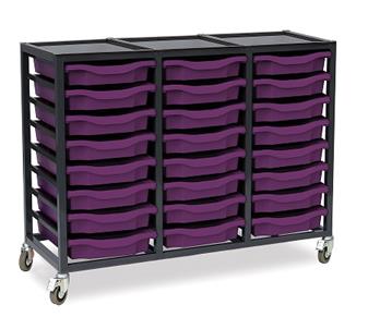 Low Charcoal Triple Column Mobile Unit - 24 Purple Trays