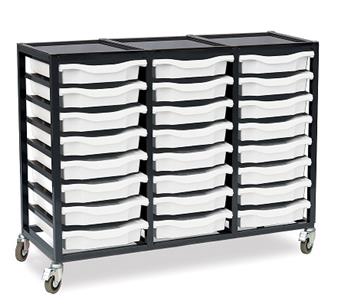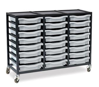 Low Charcoal Triple Column Mobile Unit - 24 White Trays