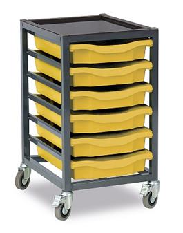 Low Charcoal Single Column Mobile Unit - 6 Yellow Trays