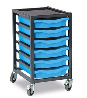 Low Charcoal Single Column Mobile Unit - 6 Cyan Trays