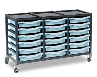 Low Charcoal Triple Column Mobile Unit - 18 Light Blue Trays