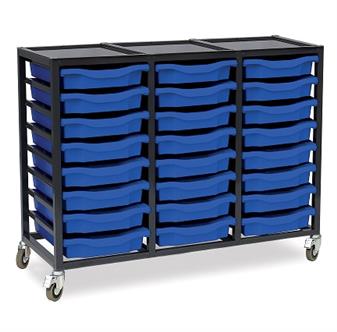 Low Charcoal Triple Column Mobile Unit - 24 Blue Trays