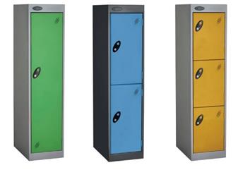 Low Lockers - Key Stage 2 children aged between 7 years and 11 years, with an age-appropriate design to ensure belongings are easily reachable. Ideal child-height lockers for schools, classrooms, changing rooms, cloakrooms, and a variety of other work and play environments. Each locker has a strengthener welded inside each door to increase strength and security, and each unit has a welded plinth making each compartment totally separate and increasing structural rigidity. Each door features an integral air vent system and either a cam lock or hasp and staple lock which allows the use of a padlock or lock with 2 keys. (Shank diameter minimum 7mm, maximum 8mm. Padlock not supplied.) The low lockers comes with one door, two doors or three doors per unit. They can come as a single locker, a fixed nest of two, or a fixed nest of three. There is a choice of 12 door colours and 3 carcass colours. Manufactured in the UK, these lockers conform to BS 4680:1996, ISO 9001:2000, and ISO 14001:2004. They come with a 7 year manufacturer guarantee.