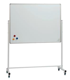 Magnetic Mobile Writing Boards are double sided - plain on both sides, and come in 5 sizes. Supplied with a satin silver anodised aluminium frame and rounded safety corners. Mobile frame with locking castors and stability bar.
