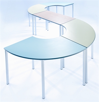 Meet Tables provide a must-have solution for any modern school classroom and for any other educational or learning areas. Ideal for a variety of cluster or meeting room type environments. The range offers 5 flexible table shapes, arc, rectangular, square, circular, and semi-circular, which can be laid out in a variety of configurations. Four arc tables fitted together for example, will make a 2000mm diameter circular table with an 800mm gap. The premium 45mm frame comes with a 25mm top. The table comes with a Duraform PU Edge - a high impact and resilient textured spray PU edge, enhancing the look and lifetime of your tables and available in a choice of colours. Meet Tables comes in one adult height of 740mm. There are 11 top colour options and 4 frame colour options. The tables come with a 5 year guarantee.