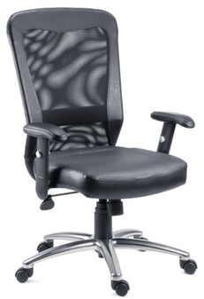 Mesh Back Operator Chair with leather seat and leather surrounded aerated mesh back. The chair features a gas seat-height adjustment and reclining function with tilt tension control. Height adjustable armrests are also included. Ideal seating for the office, or for other working areas.