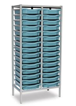Mid Height Grey Frame Double Column - Metal Blue Trays