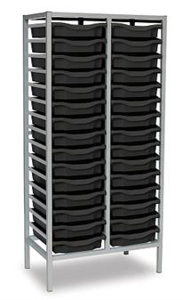 Mid Height Grey Frame Double Column - Dark Grey Trays