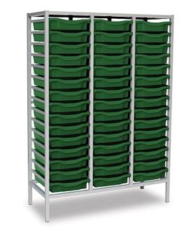 Mid Height Grey Frame Triple Column - Green Trays