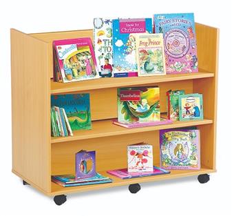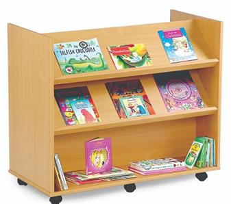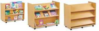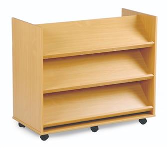 Mobile library or book trolley with shelves on each side. This robust wooden library units are ideal for the primary school classroom or other library areas in schools where a mobile trolley can fit so that books can be accessed both sides. Compact and convenient mobile bookcases that will fit well in the school library. The trolley comes fully assembed and with castors. Available in beech, maple or white finish.